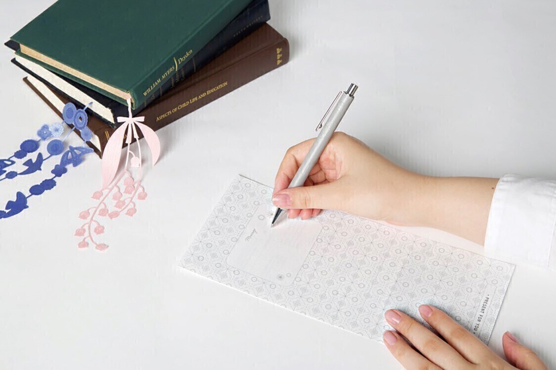 台紙の裏側は手紙としても使えます。メッセージを書き、付属の宛名書きシールに住所を記入し切手を貼れば、このままポストへ投函し郵送が可能です。気持ちを伝える小さなギフトとして活躍します💌