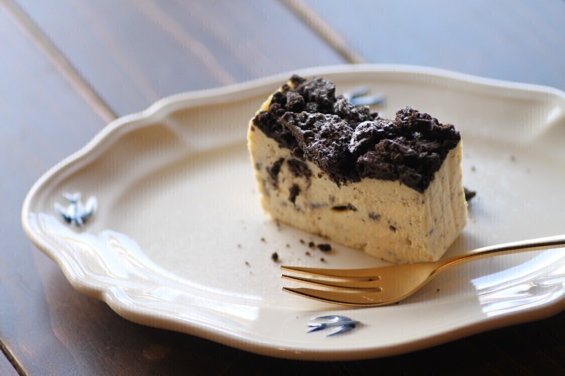クッキーを混ぜ込み、上にたっぷり乗せました!やさしい甘さで、食感も楽しめるチーズケーキです。