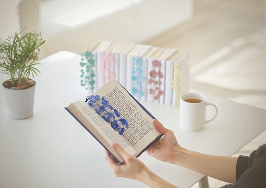 読書時はもちろん、読み終わった本を本棚にしまう際には、ぜひ美しいモチーフ部分を背表紙にかけてお使いください。本棚などを彩るインテリア小物としてもお使いいただけます。