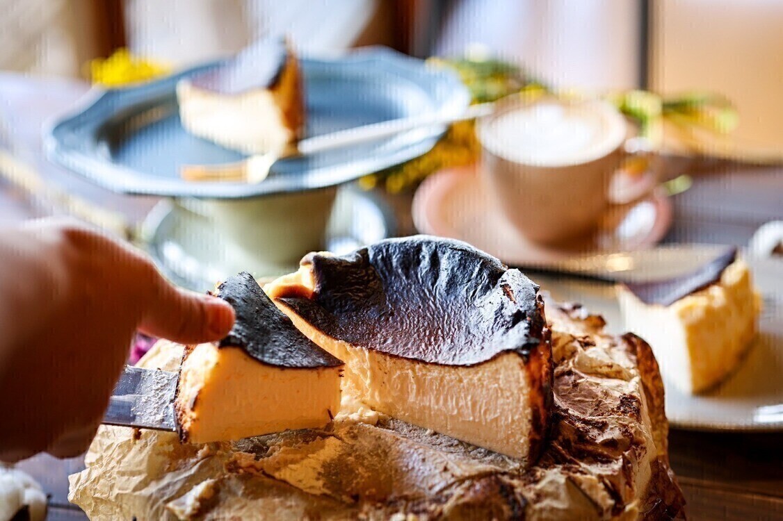 とろける食感のバスクチーズケーキは、チーズケーキの概念を覆すと喜ばれています🧀