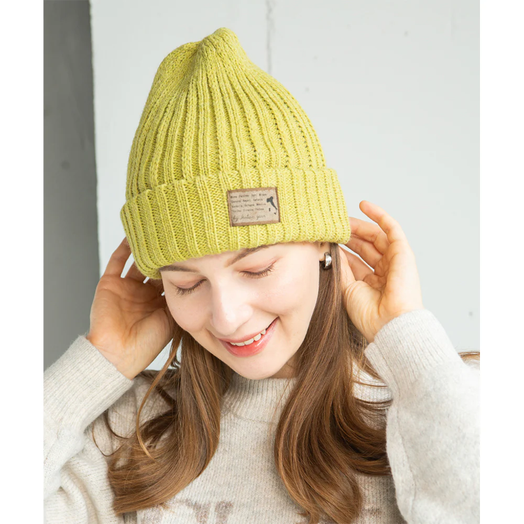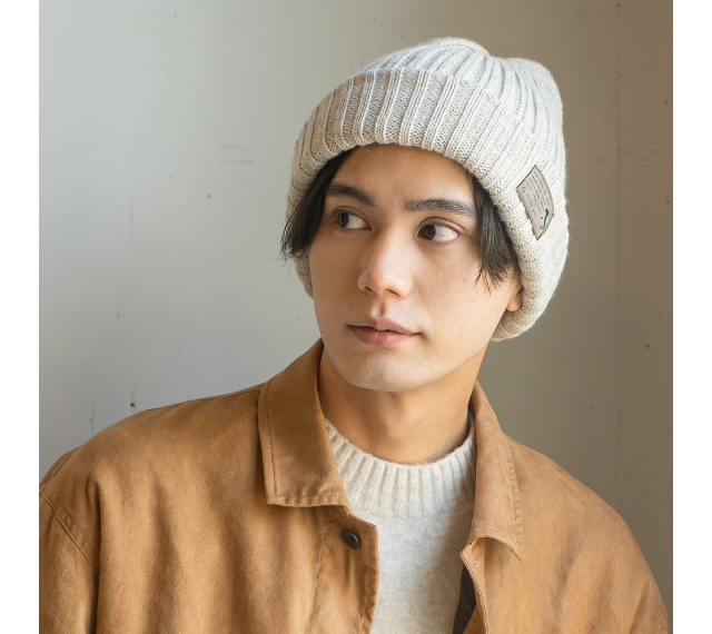 リブ編みなので伸縮性があり、頭の形にフィットし、頭のサイズが大きめの方から、小さめの方まで、男女問わずお使い頂けて、贈り物にもおすすめです。