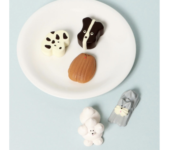 犬をモチーフにお菓子の材質や特徴を活かし、犬種ごとの毛並みやユーモアあふれる表情が魅力。