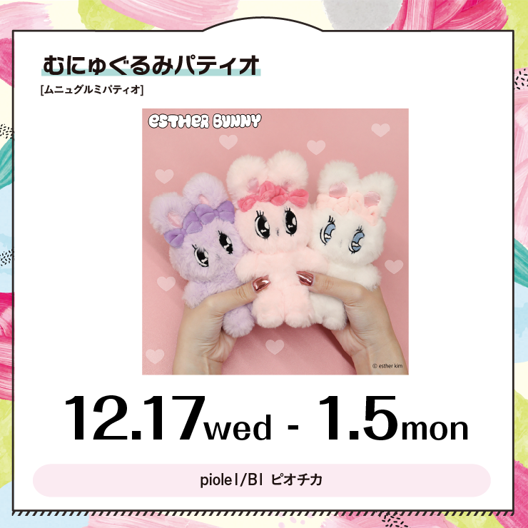 12月17日(水)~2026年1月5日(月)は、人気キャラクターが勢ぞろいする「むにゅぐるみパティオ」が期間限定で登場します。