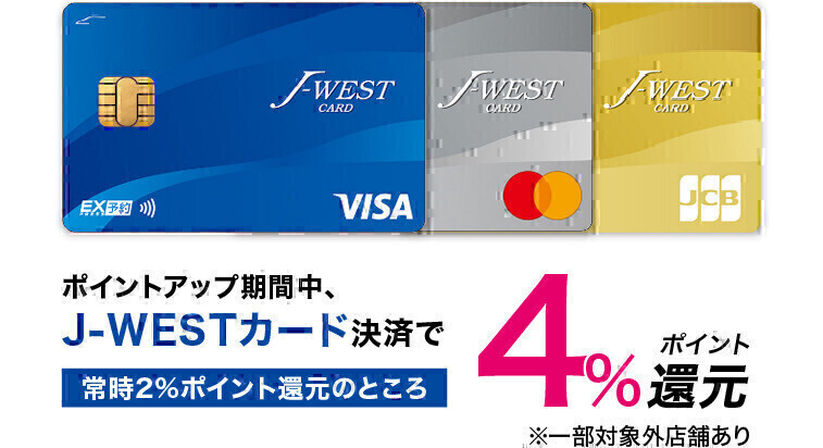 ※エディオン・ヴィーボ ベアルスィ・マクドナルド・西館クリニックプラザ・からだ接骨院芦屋院はJ-WESTカード決済でのポイント優待対象外です。