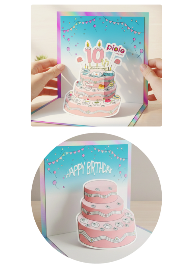 ピオレ明石の開業10周年をお祝いするアニバーサリーのイラストを使ってポップアップカードを作りましょう!