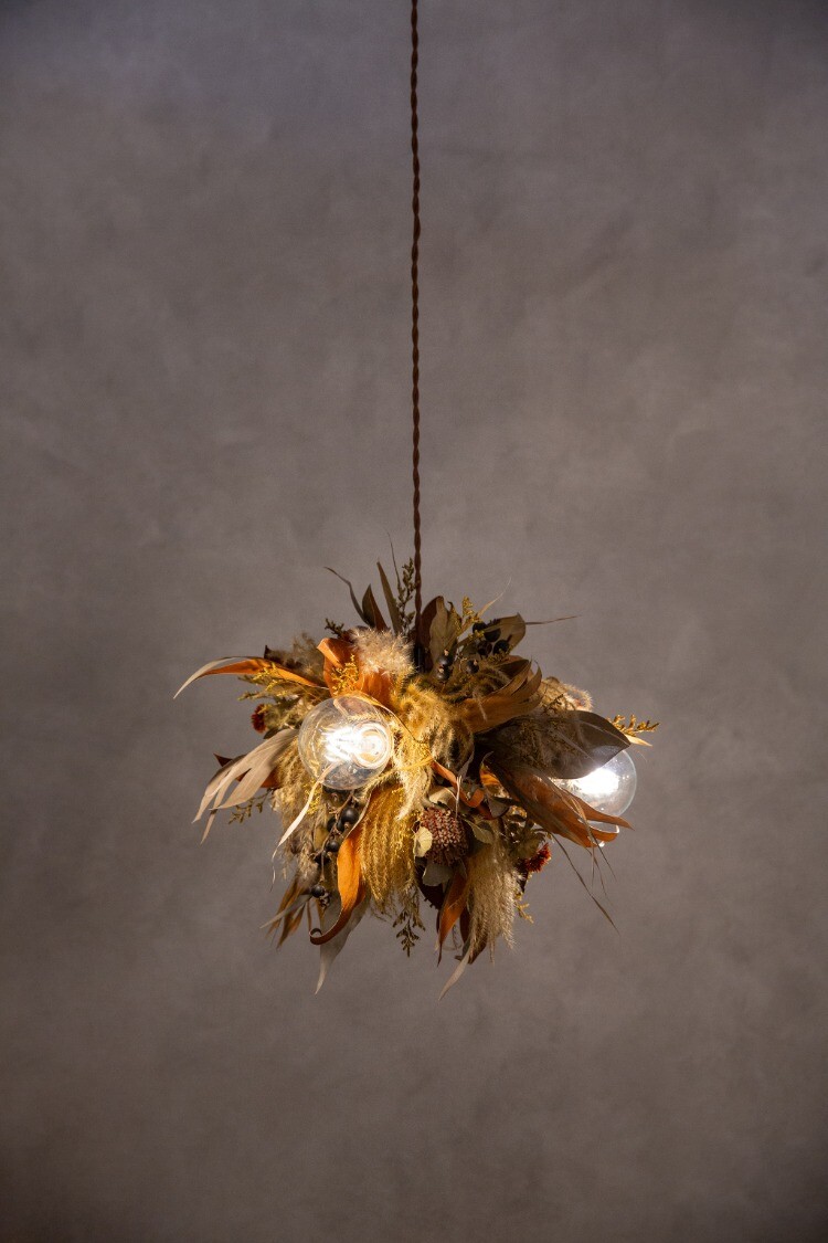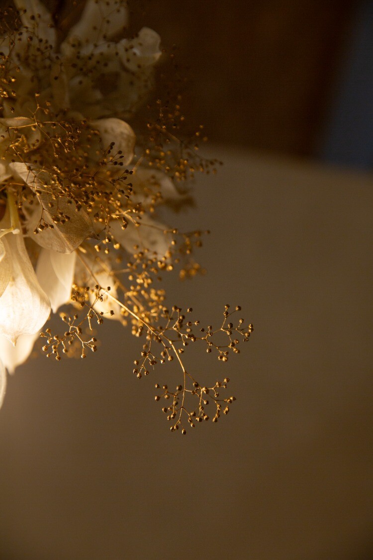 例え同じ花材を使用したとしてもお花1本1本に個性があるため、すべてのシャンデリアは”特別な1点もの”としてお愉しみ頂けます