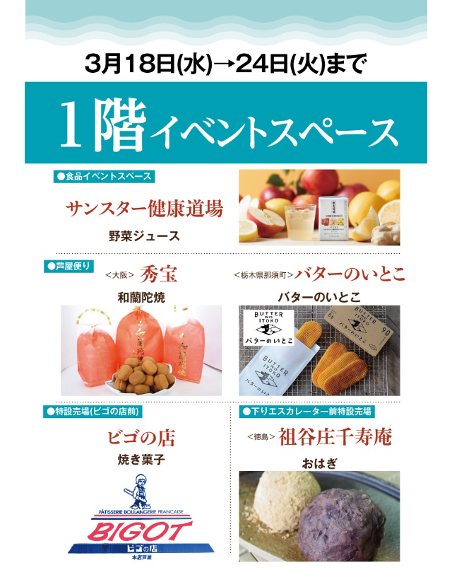 大丸芦屋店 地階・1階には週替わりで様々なショップが出店いたします✨