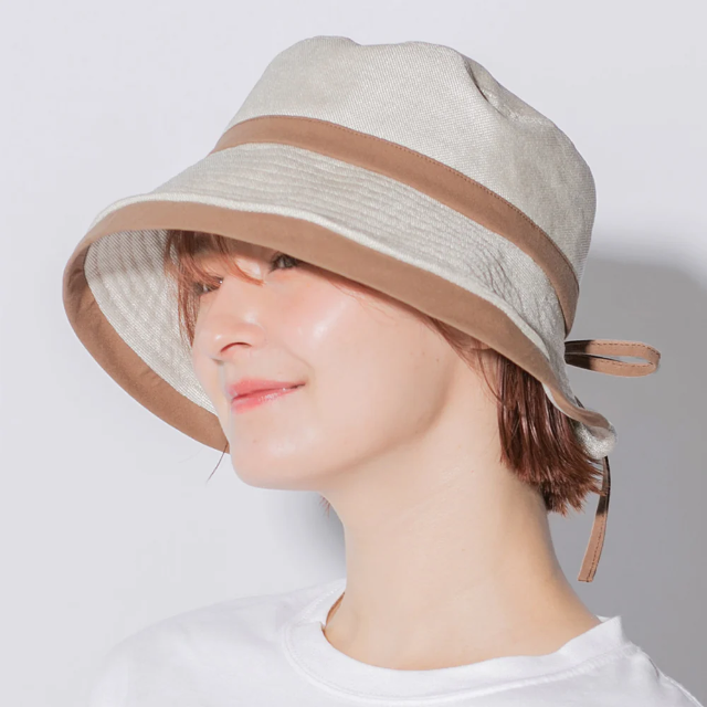 こちらの帽子は、ツバ先の配色切り替えがアクセントの紫外線対策にもってこいなツバ広ハットです◎