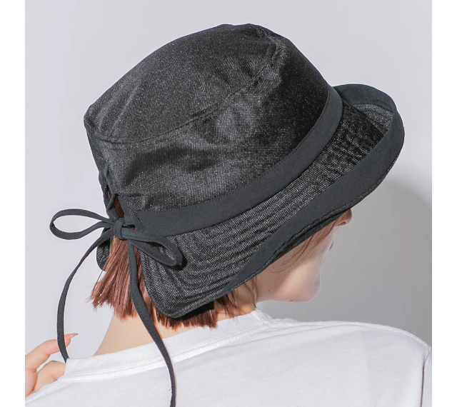 帽子後ろ部分は紐で結ぶ仕様になっているので、髪の毛を結んだスタイルでもストレスなく被っていただけます!