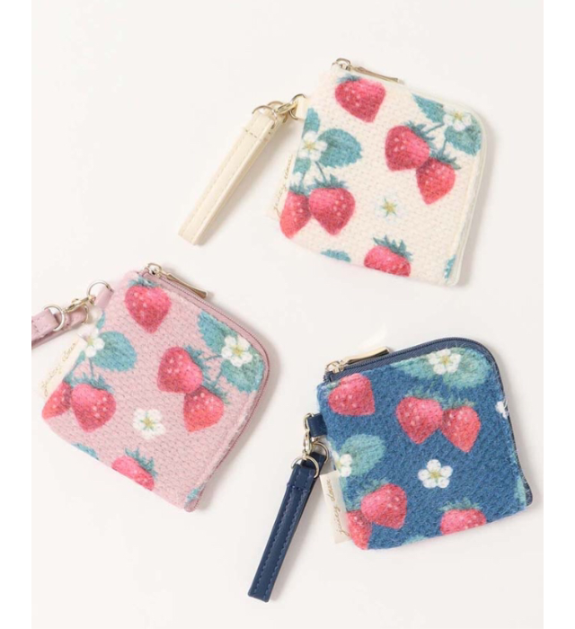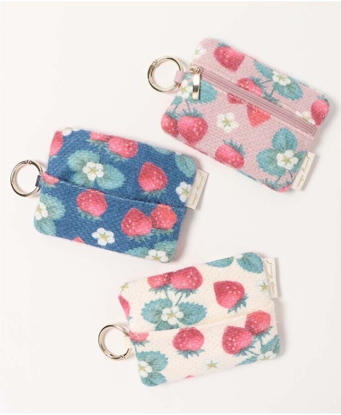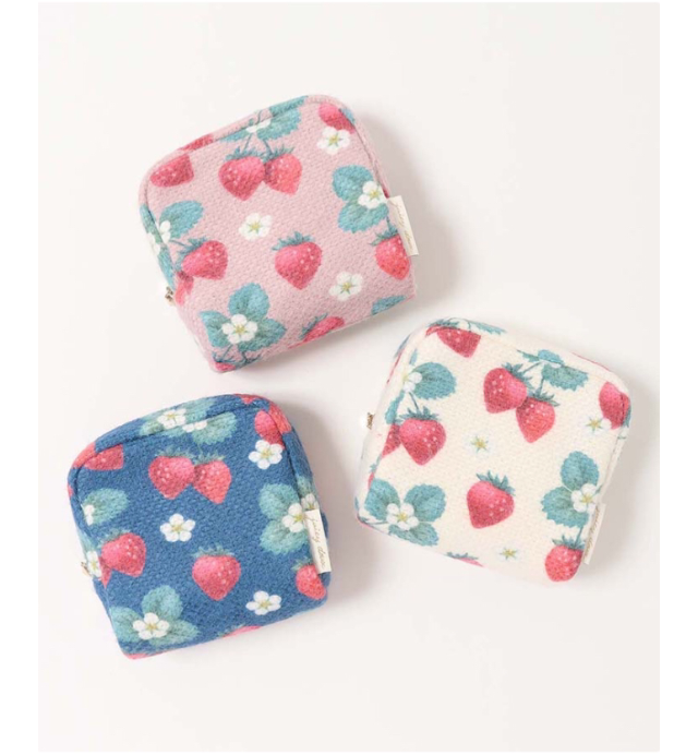 春を感じるいちごデザインのミニポーチ。