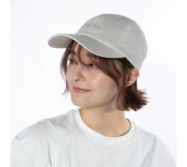 【イチヨンプラス】麻混筆記体刺繍キャップ