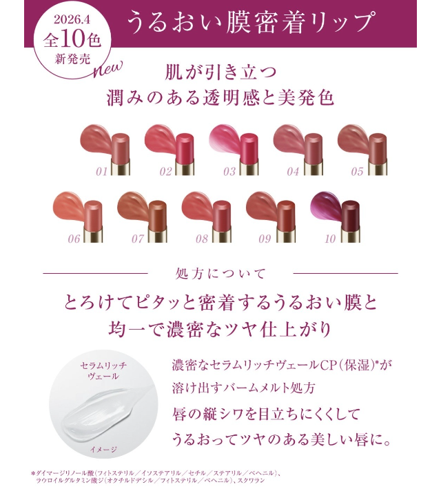 美容液配合なので唇の縦シワを目立ちにくくして、うるおいとツヤのある美しい😍仕上がりになります!